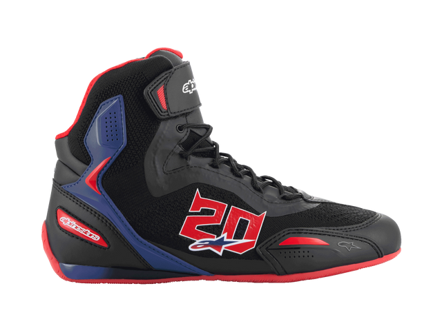 Buty FQ20 Faster-3 Rideknit® charakteryzują się optymalnym połączeniem konstrukcji inspirowanej wyścigami samochodowymi z zaawansowanym mikrowłóknem i rewolucyjnym materiałem Rideknit® firmy Alpinestars. Buty FQ20 Faster-3 Rideknit® są doskonałą opcją dla fanów Fabio, którzy szukają najwyższego poziomu czucia i kontroli na motocyklu bez rezygnacji z ochrony.