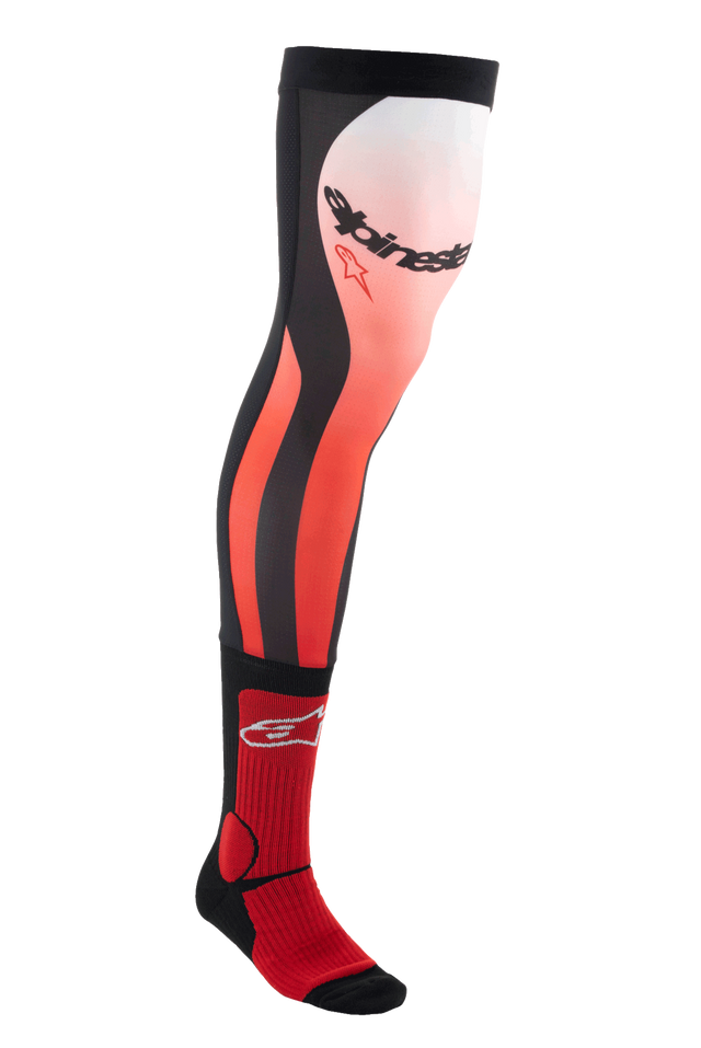 Specjalnie zaprojektowane do noszenia z gamą butów terenowych i ochraniaczy kolan Alpinestars, skarpety MX Long Knee Brace Socks mają jednowarstwową, zwartą konstrukcję zapewniającą wysoki poziom oddychalności i ogólny komfort. Skarpety mają rozciągliwą górną część z Lycry, która zawiera wstawkę z siatki na tylnej części górnej nogi oraz elastyczny górny brzeg z wewnętrznym silikonowym uchwytem, aby utrzymać skarpety na miejscu. Skarpety MX Long Knee Brace Socks zapewniają zwiększony komfort i dopasowanie dla motocyklistów MX, którzy noszą ochraniacze kolan.