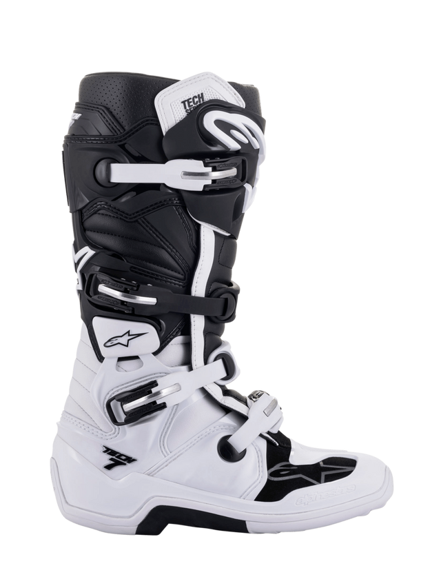 Zrewolucjonizowany but Tech 7 MX łączy innowacyjne materiały i technologię w zupełnie nowym projekcie, tworząc lżejszy, bardziej anatomicznie profilowany produkt. Ten certyfikowany przez CE but wspiera stabilność rdzenia i elastyczność dzięki biomechanicznemu przegubowi, jednocześnie oferując doskonałą ochronę kostki. Cholewka buta została zaprojektowana tak, aby zapewnić pełne wyczucie i zoptymalizowaną interakcję z kontrolkami motocykla, podczas gdy innowacyjny system klamry umożliwia łatwe i precyzyjne zamknięcie.